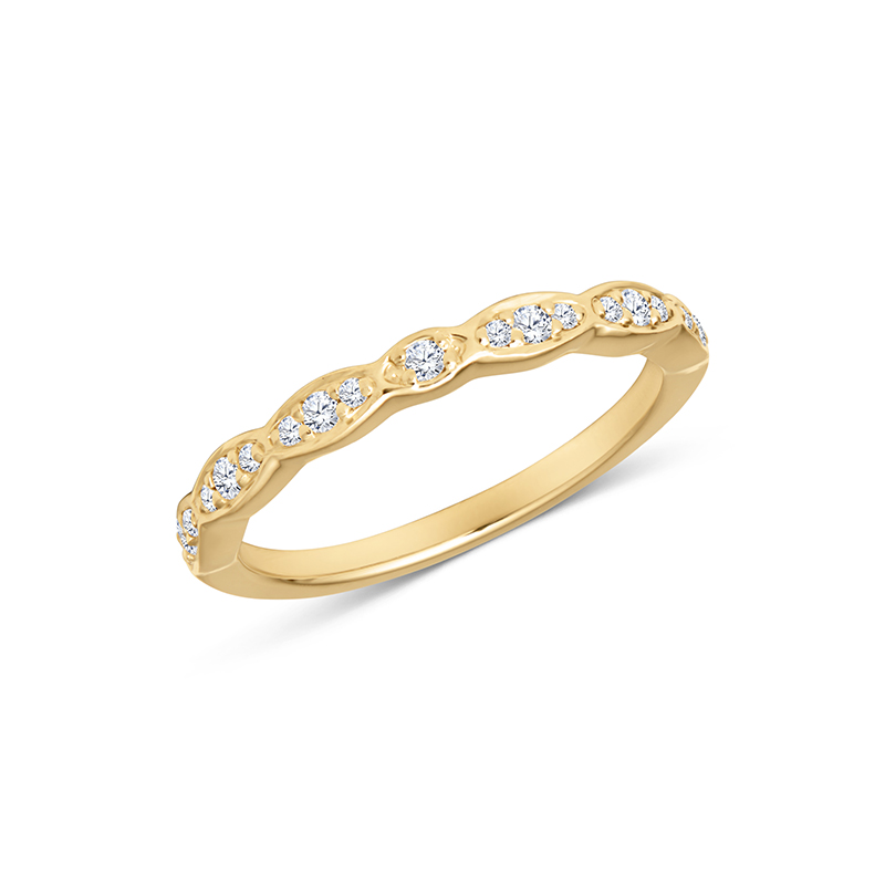 A flowing wave design set with diamonds, creating a delicate band with soft shimmer.
