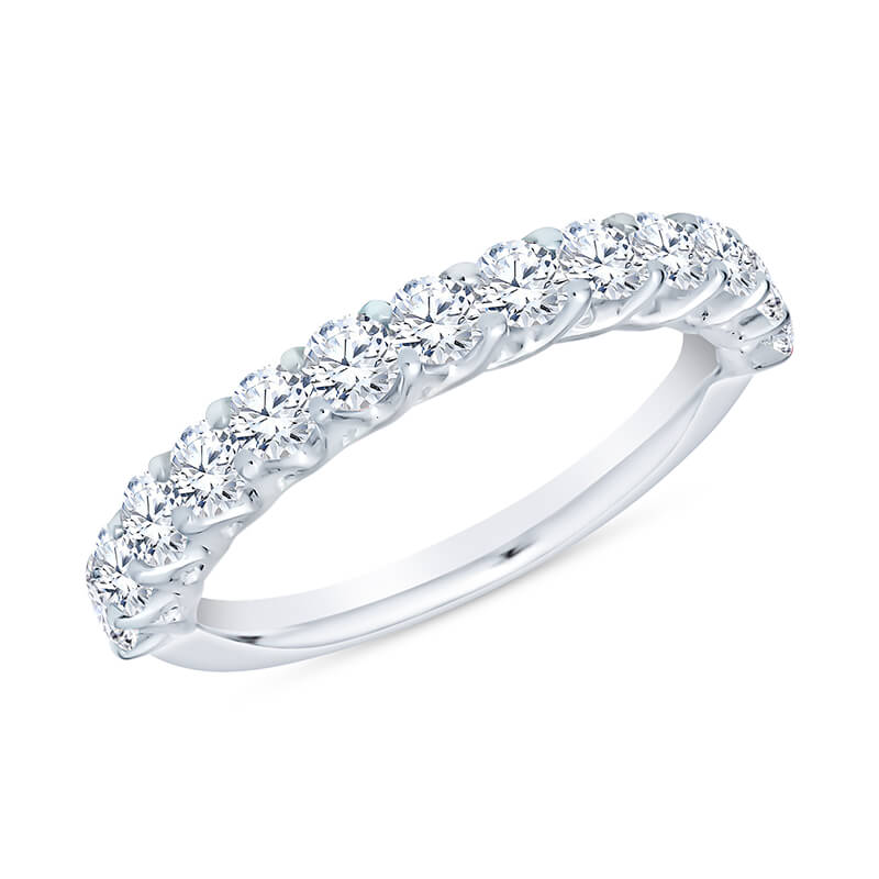 This 14K white gold band, weighing 2.22 grams, is set with 13 round brilliant diamonds totaling 1.10 TCT in a classic shared-prong design, delivering bold brilliance with timeless sophistication.