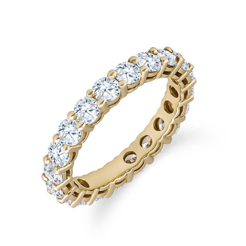 A stunning 18k yellow gold eternity band set with 28 Round diamonds weighing 1.01ctw.