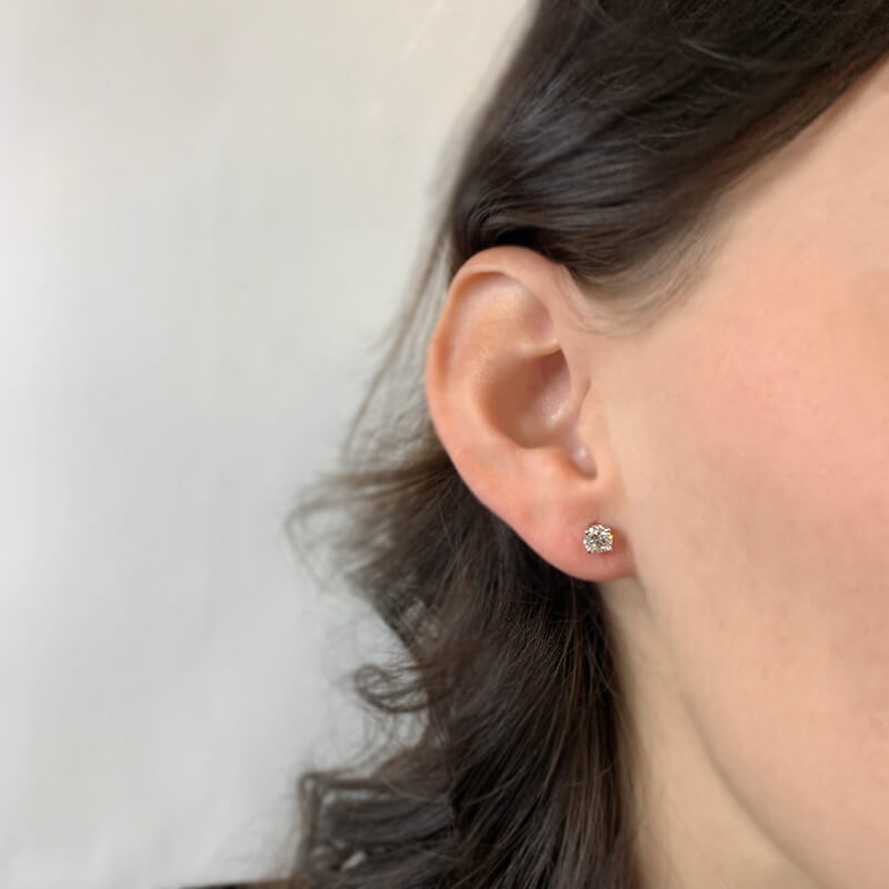 Exquisite 14k white gold 4 prongs studs set with two captivating round brilliant cut 1.01ctw.
