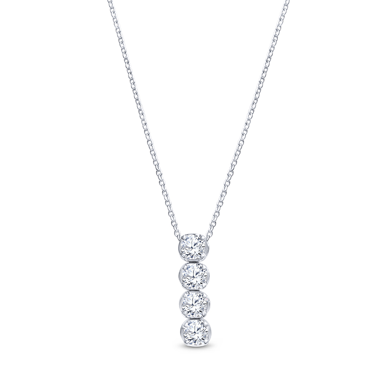Crafted in 14K white gold, this elegant necklace features four bezel-set round diamonds totaling 0.45 carats in a sleek vertical drop design. Suspended from a delicate 16-inch cable chain, it offers timeless sparkle perfect for everyday wear or special occasions.