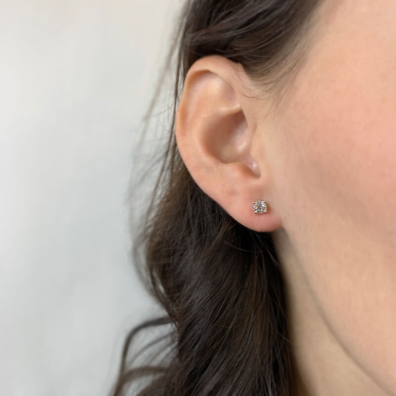 Classic 14k white gold studs displaying two beautiful 0.50ctw G/VS1 GIA Ideal Cut Round diamonds.