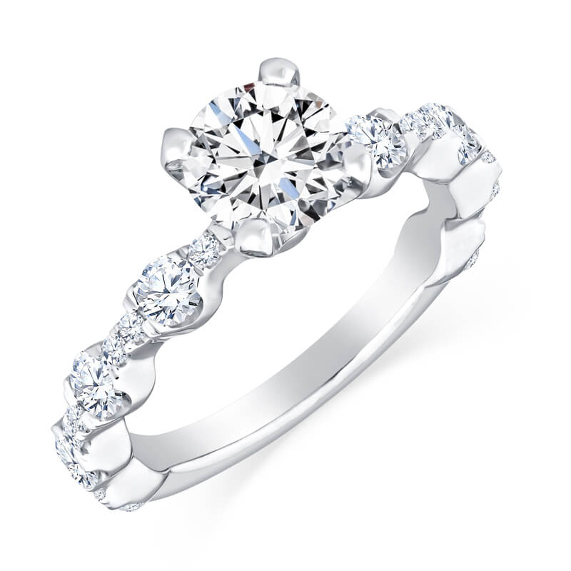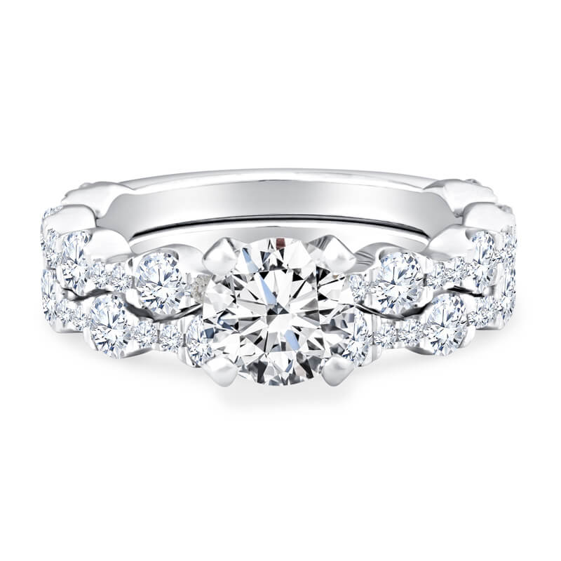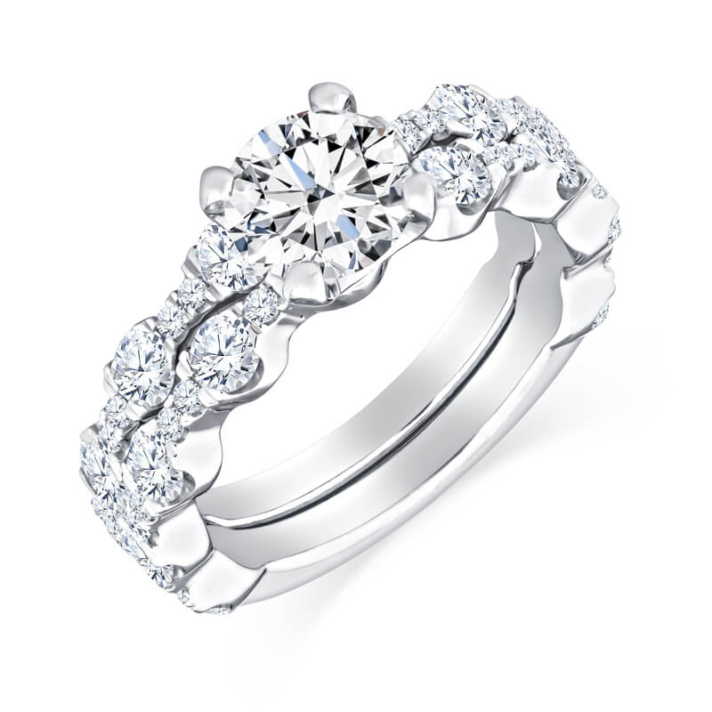 Stunning pave set engagement ring and band with a gorgeous Ideal Cut Round diamond center. (Price does not include matching band)