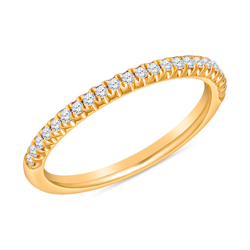 This delicate 18k yellow gold band features 23 brilliant round diamonds totaling 0.12ct, elegantly set along the top of the ring for a refined sparkle that’s perfect worn alone or stacked.