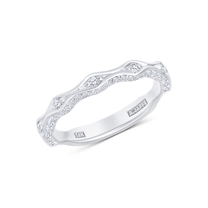 A sculpted wave design accented with shimmering round diamonds for fluid elegance. Modern and graceful with a soft, organic sparkle.